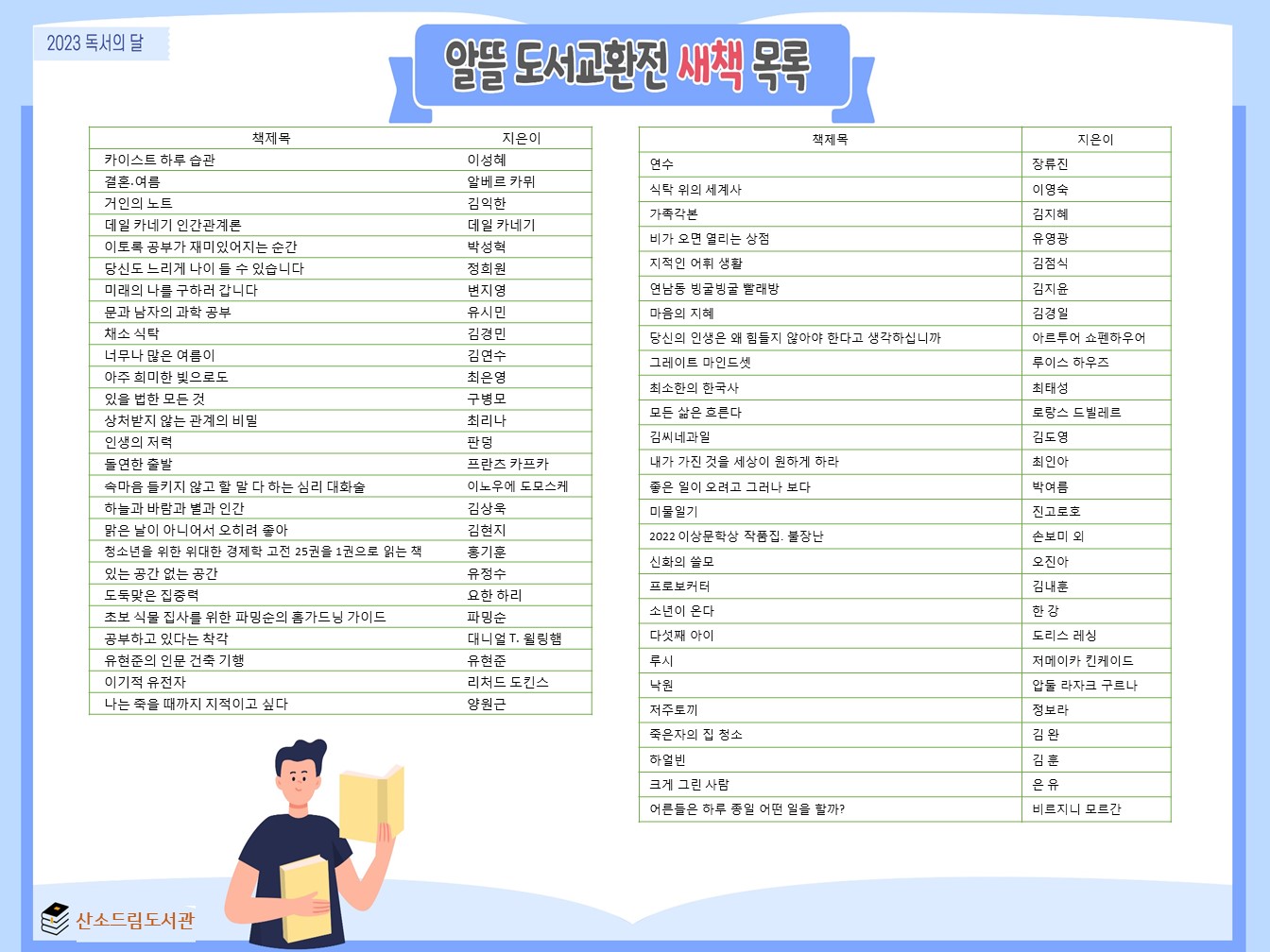 | 제목 | 시립도서관·산소드림도서관 알뜰도서교환전 진행중입니다^^ |